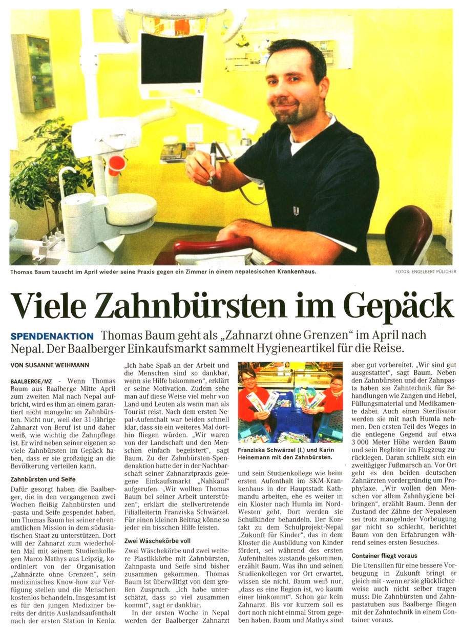Im Frühjahr 2010 ging die Reise im Namen der „Dentists Without Limits“ und des „Nepal-Schulprojektes“ nach einer Woche Arbeit im berühmten SKM-Hospital im geschäftigen Kathmandu weiter in eine der entlegensten Regionen Nepals – nach Humla.